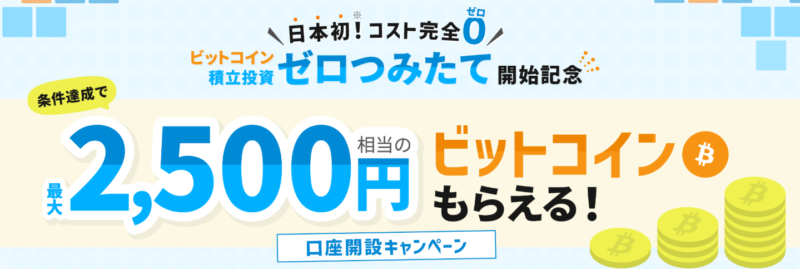 現在、口座開設で2,500円相当の仮想通貨をプレゼントするキャンペーン中です!