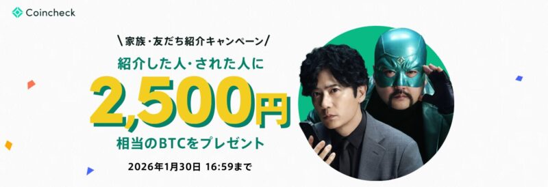 現在、友達紹介で2,500円相当のビットコインをプレゼントするキャンペーン中です!