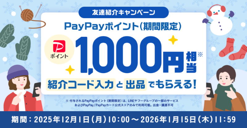 友達紹介キャンペーンで、1,000円分のpaypayポイントを受け取ることができます!